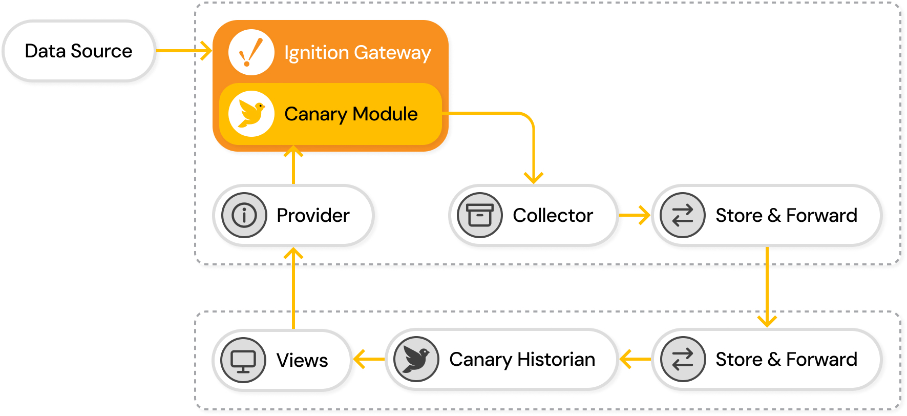 Canary's module requires a licensed Ignition Tag Historian Module.